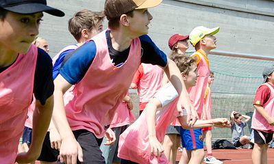 Auf der Oberstufe gab es die Möglichkeit, beim Fussball-, Basketball oder Volleyballturnier mitzumachen. Auch hier wurde der Sporttag mit einer spannenden Stafette auf der Rundbahn beendet.
