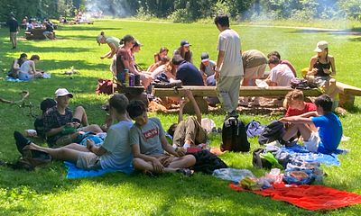 In Ligerz bestiegen wir ein Schiff und liessen uns auf die Petersinsel übersetzen, wo wir die Zeit mit Mittagessen, Ball-Spielen, Baden und Träumereien à la Jean-Jacques Rousseau bei herrlichstem Hochsommerwetter verbringen konnten.