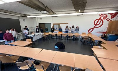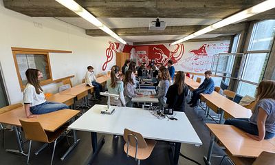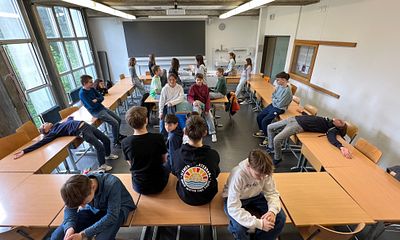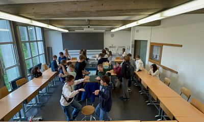 Dann aber begann der aus mathematischer Sicht spannende zweite Teil. Es musste wieder Ordnung gemacht werden! Zuerst war die ganze Klasse am Werk und anschliessend durften nur Einzelne für Ordnung sorgen. In einem langen Prozess mit regelmässigem Perspektivenwechsel haben die Schüler:innen ihr Zimmer in einen Zustand "maximaler Ordnung" gebracht. Da untereinander nicht kommuniziert werden durfte, kam es zu lustigen, aber auch spannungsreichen Situationen. Die 1c arbeitete dabei sehr ausdauernd und wunderbar exakt. Ganz von selbst entstand nach einiger Zeit ein äusserst spiegelsymmetrisches Bild. Scheinbar sind wir Menschen so an Symmetrie gewöhnt – sie begegnet uns permanent –, dass wir diese Form als am ordentlichsten empfinden.