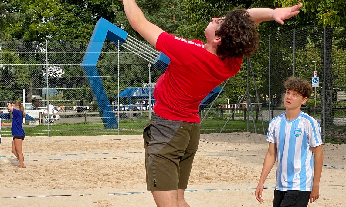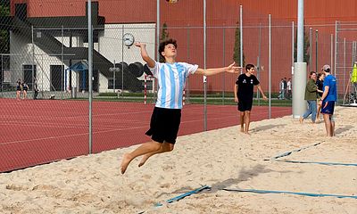 Die Beachvolleyballerinnen aus unseren Reihen starteten als erste in ihr Turnier. Als Hallenspielerinnen mussten sie sich zuerst noch etwas an den Untergrund gewöhnen, konnten sich dann aber stetig steigern und ihr Können unter Beweis stellen. Mit dem 3. Gruppenrang qualifizierten sie sich für das Spiel um Rang 5 und 6, wo sie sich knapp geschlagen geben mussten.