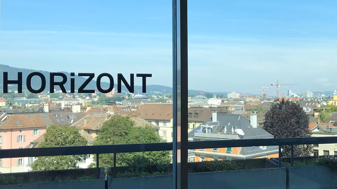 Ausblick von der Dachterrasse des Schulhauses Riesbach.